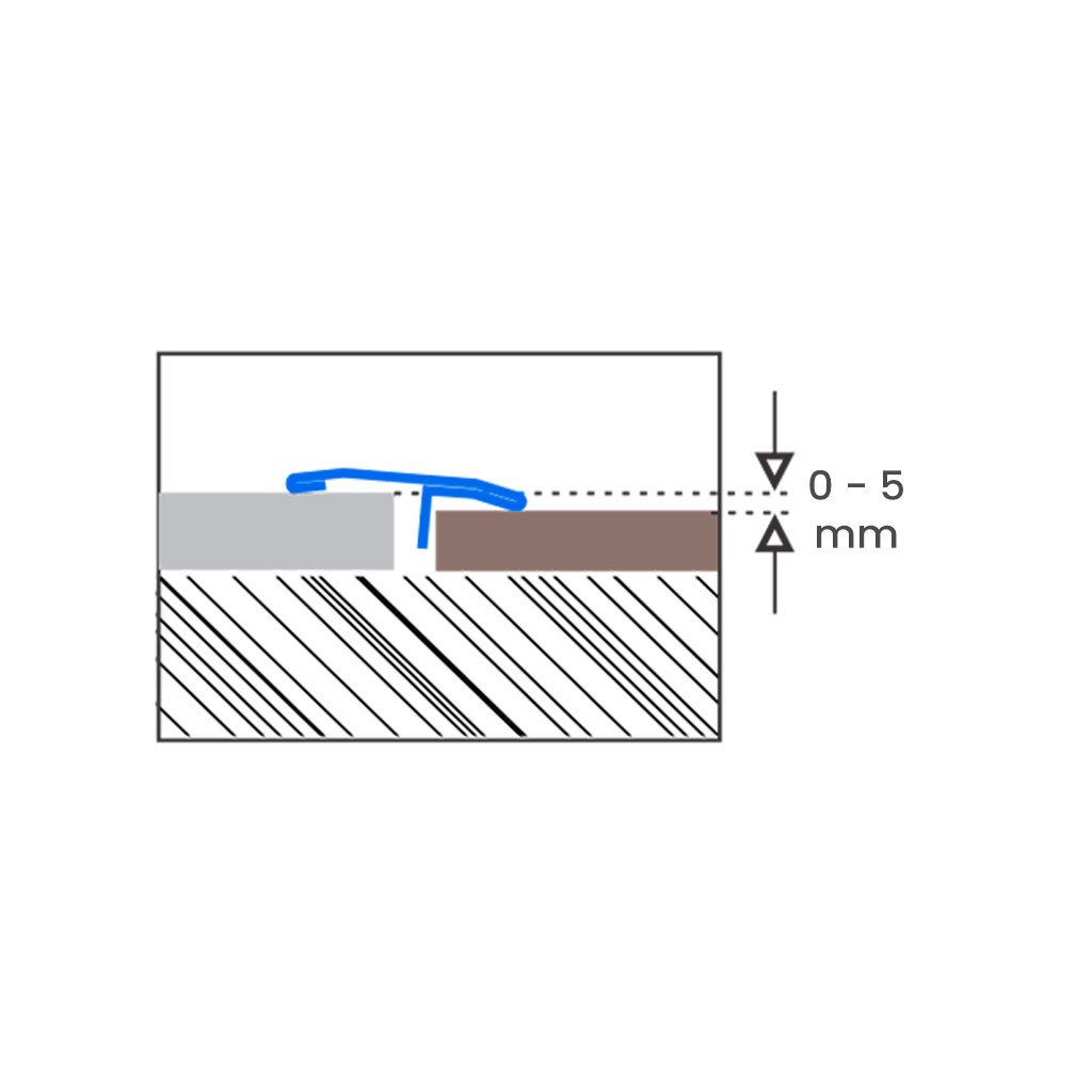 O Perfil DZERO foi desenvolvido para garantir transição suave e segura na união de pisos nivelados ou com pequenos desníveis, oferecendo solução técnica eficiente para correções finas no acabamento. Ideal para situações em que o desnível é inferior a 5 mm, o DZERO atua de forma estética e funcional, harmonizando a junção de revestimentos produzidos em materiais ou texturas diferentes.