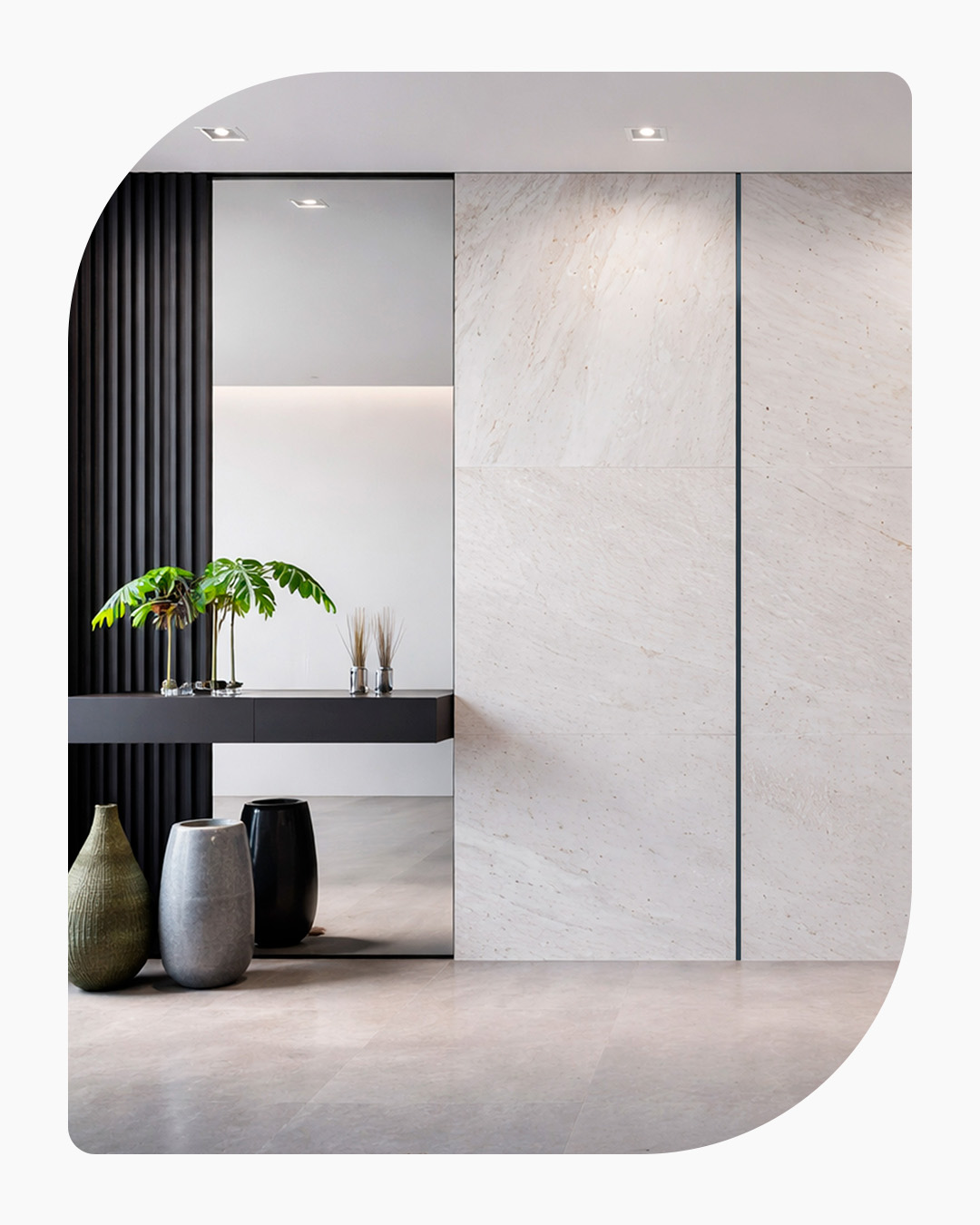Soluções desenvolvidas para conduzir a água com eficiência e, ao mesmo tempo, compor o acabamento do ambiente, mantendo linhas limpas, proporções equilibradas e visual sofisticado.